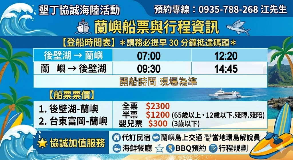蘭嶼自由行 後壁湖↹ 蘭嶼 來回船票+摩托車二天一夜